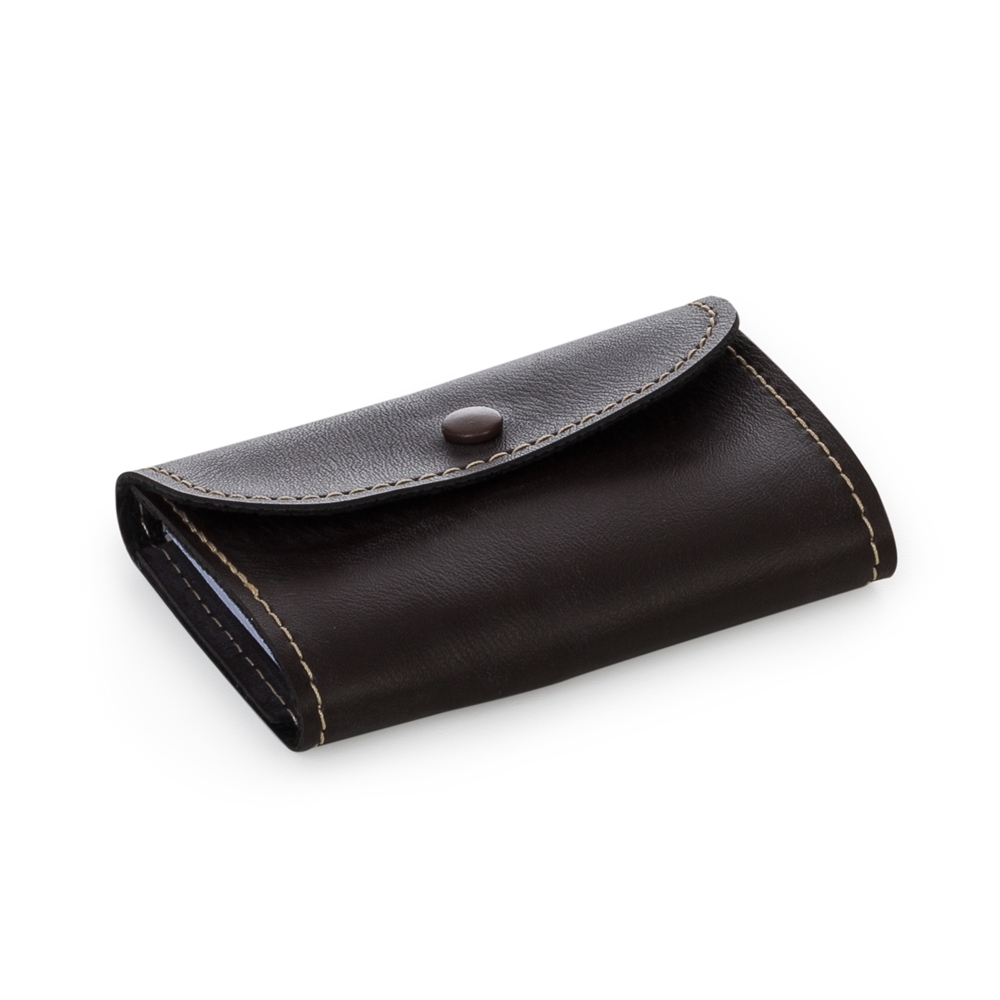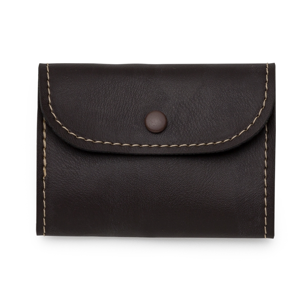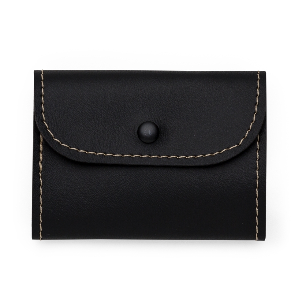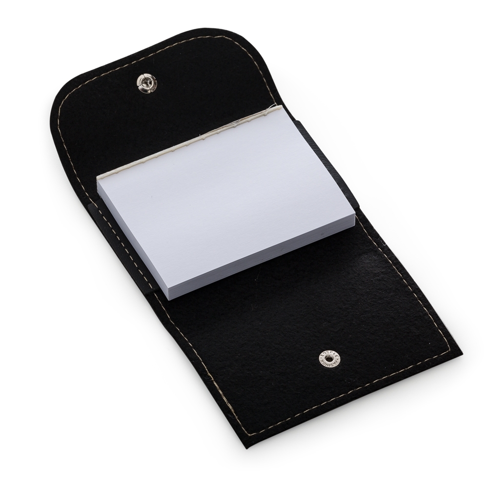 Bloco de anotação Bidins em couro sintético com botão de pressão. Possui aproximadamente 80 folhas brancas sem pauta.