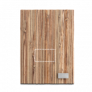 Caderno A5 com capa dura em palha natural. Incluso uma placa em metal, própria para personalização, para adicionar à capa. Contém 192 folhas pautadas em papel cor marfim proveniente de gestão florestal sustentável. Fornecido em caixa presente em papel kraft. 150 x 210 mm | Placa: 30 x 15 mm