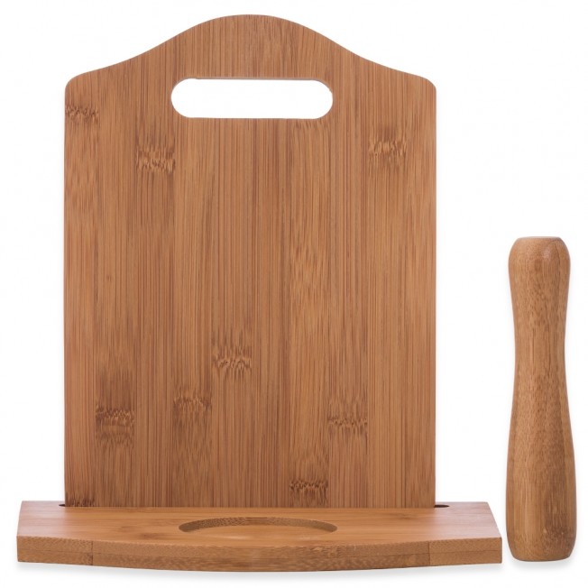 Tamanho total aproximado (CxL): Tábua de Corte 23 cm x 17 cm – Tábua Suporte 21,3 cm x 14,1 cm – Socador 14,4 cm x 3 cm
