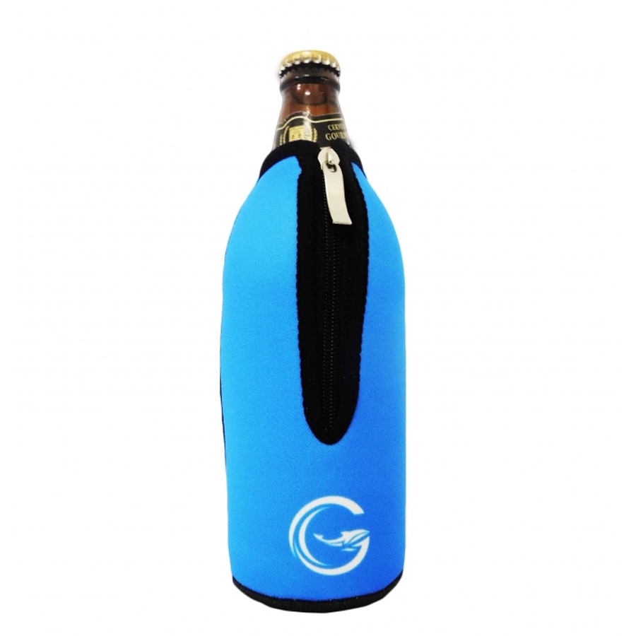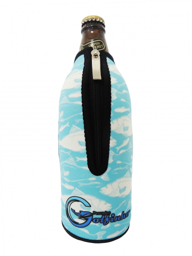 Confeccionado em Neoprene de 3mm, o melhor material para brindes por conta dentre às suas várias características, a alta qualidade, resistência, durabilidade e elasticidade. Possui o tamanho perfeito para este tipo de garrafa, protegendo-a e mantendo a temperatura por curtos períodos de tempo. Toda a costura é realizada utilizando máquinas com linhas e agulhas específicas para esse tipo de produto, aumentando ainda mais a qualidade do brinde. O fechamento em zíper diferenciado com cursor niquelado dá um charme a mais à peça além de facilitar a colocação e retirada da garrafa do produto. Dimensões 14cm x 28cm, 67g.